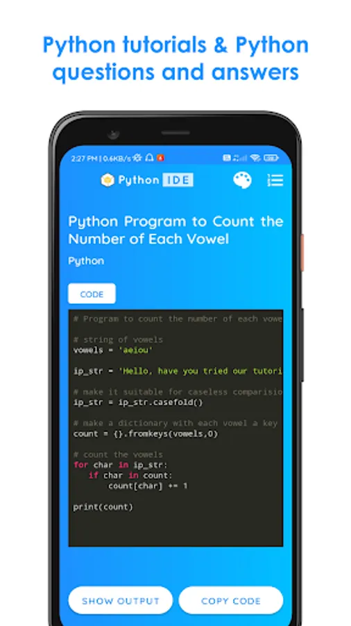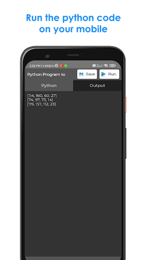 Experience the power of coding Python on your mobile device with Python IDE. This high-speed app delivers accurate results with exceptional efficiency. Its sleek and intuitive user interface ensures a seamless coding experience, day or night.