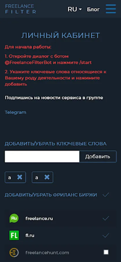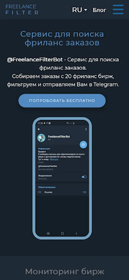 Собираем заказы с 20 фриланс бирж, фильтруем и отправляем Вам.
