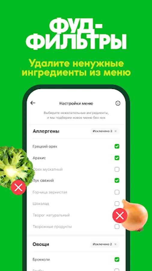 Customize the menu and remove all dishes with unloved ingredients in one click