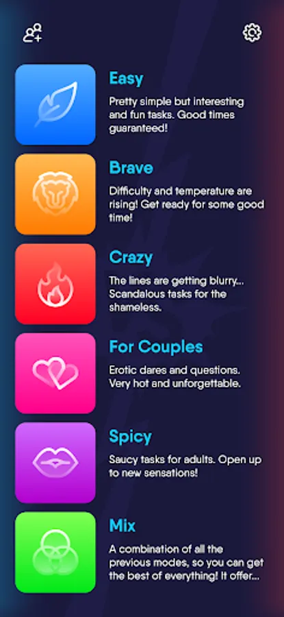 Whether you're enjoying a hot, naughty night at a lively house party with drinks flowing, or having a sober hangout with friends, family or your other half, our game adapts to every mood and occasion. It's the perfect mix of couples games, friend challenges, and exciting dares. So, sober or drunk, our game ensures a fantastic, laughter-filled time for everyone!