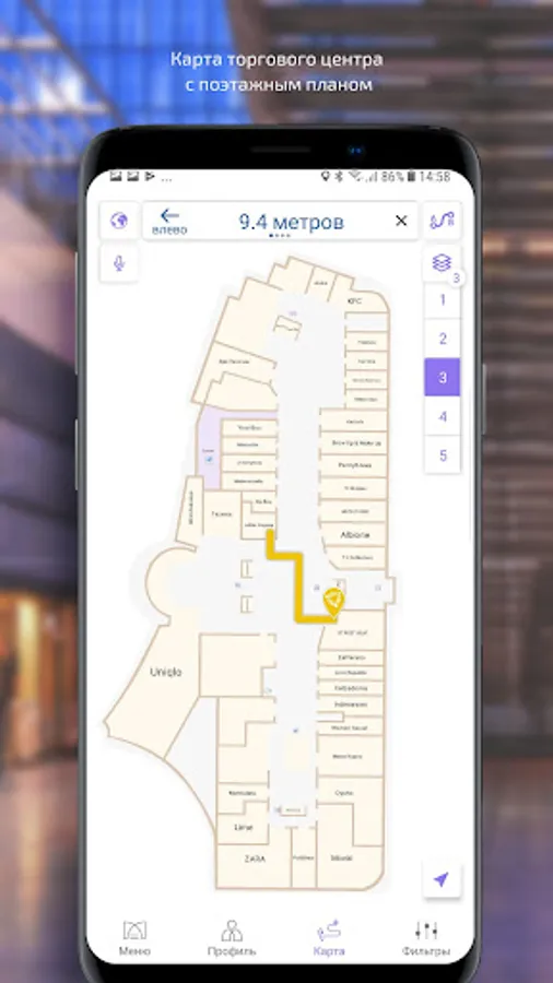 That's why we have created an application that helps not to get lost in the mall and find discounted interesting thing in the shortest possible time.