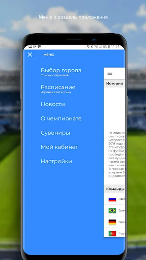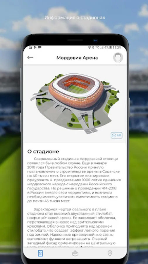 In the application there are stadiums of cities: Kaliningrad, Volgograd, Rostov-on-Don, Saransk, Nizhny Novgorod, Samara and Yekaterinburg.