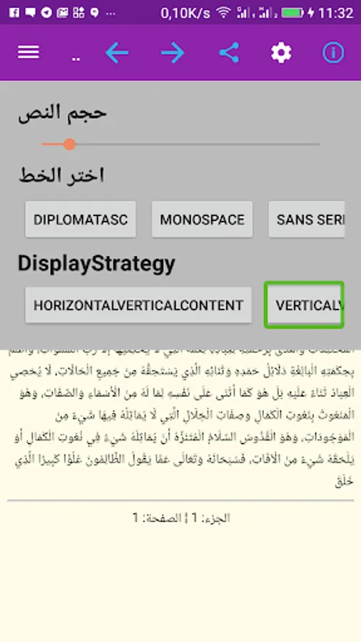 You can enlarge or decrease font with the ability to save over the magnification in the event of re-close and open the book