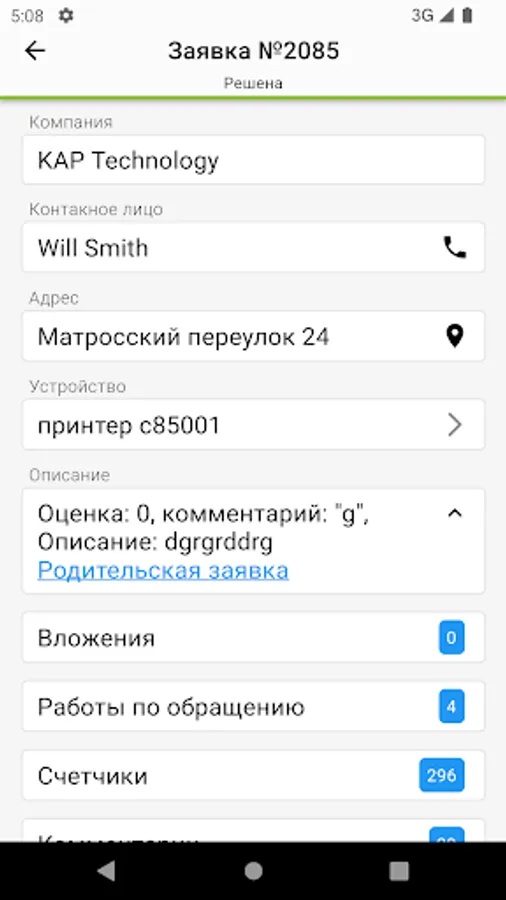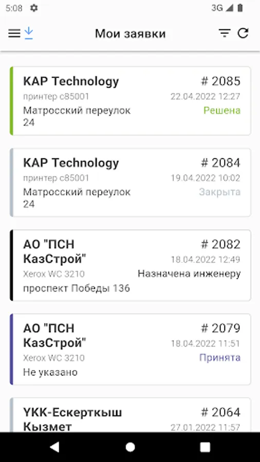 The system allows you to manage customer requests on-line, plan engineers' visits based on their workload and location, and keep records of server equipment, printing equipment and consumables. Implemented contractual interaction with customers, with the control of SLA, the scope of services and serviced equipment.