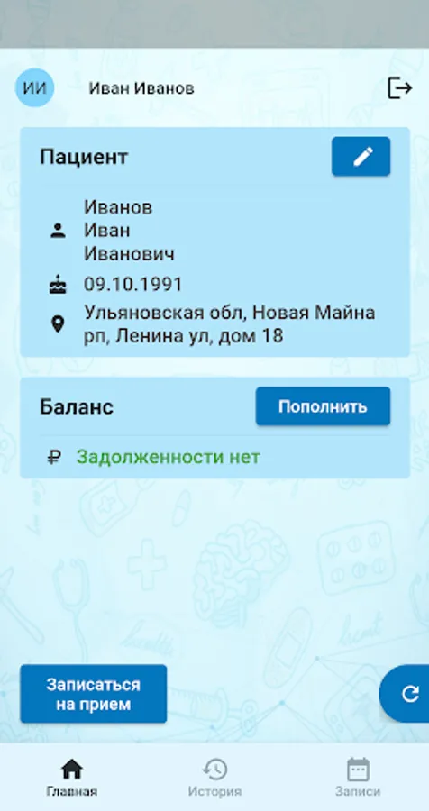 Personal office of the patient of the polyclinic. Allows you to get access to all your medical data: held and appointed doctor's appointments, the results of studies and analyzes, and other medical data stored in your electronic medical record. You can view the schedule of doctors' appointments and make an appointment with any doctor at a convenient time for you. You can also pay for medical services directly in the application.