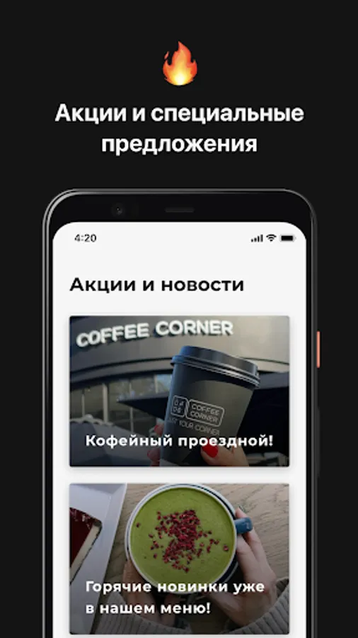 In the section Promotions and news - information about new menu items, events and special promotions. On the main screen, along with the bonus card, are the addresses of all establishments.