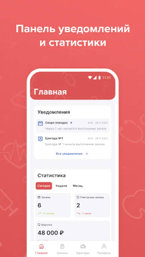 Scale your business with us. Your fleet will receive its own mobile application for drivers and a web platform for the operator. Transfer the order to the driver in real time, track the status of their implementation, manage crews, view order statistics to optimize work, etc.