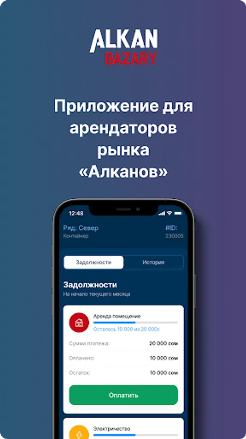 Use the application to track your debts for a leased land plot, premises, and also for electricity.