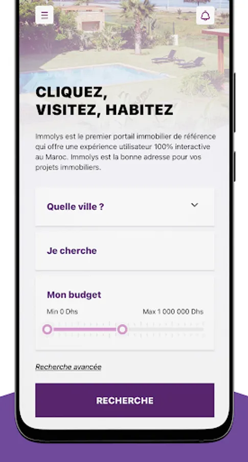 Immolys is the gateway to innovative real estate in Morocco, it offers a wide range of new new real estate programs for purchase: golf & seaside resorts, sumptuous apartments, duplexes by the sea, luxurious villas and lots of land, and industrial lots in unique locations.