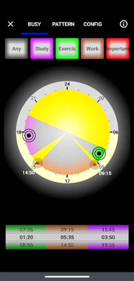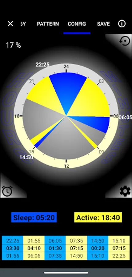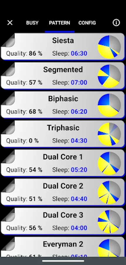 This application has 14 sleeping modes (polyphasic sleep) and each one is optimised depending on previously declared busy time (work, school, training).