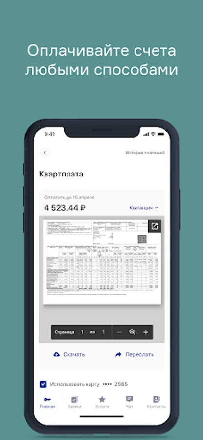 Pay bills, submit applications, submit meter readings, participate in general meetings and surveys, receive notifications from the company, view camera images, open barriers / gates. All these features are implemented in our application.