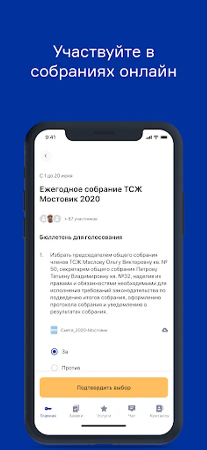- submit proposals for the inclusion of work in the plan for future periods, see the proposals of the management company and your neighbors, discuss the proposals in the chat;
