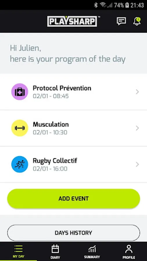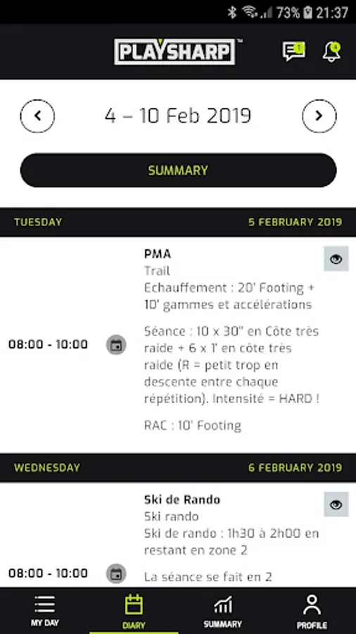 With the PLAYSHARP app, your weekly training schedule is @ your fingertips !