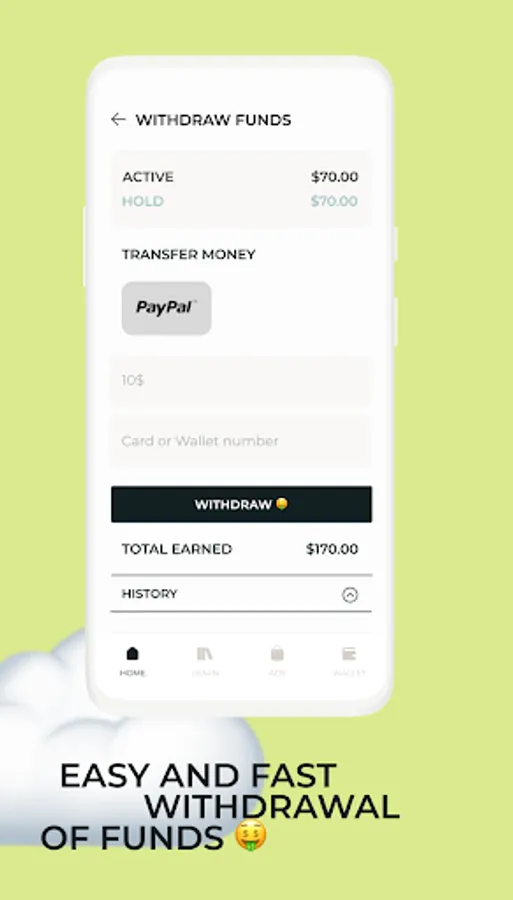 Withdraw money on Visa, Mastercard and e-wallets instantly on request.