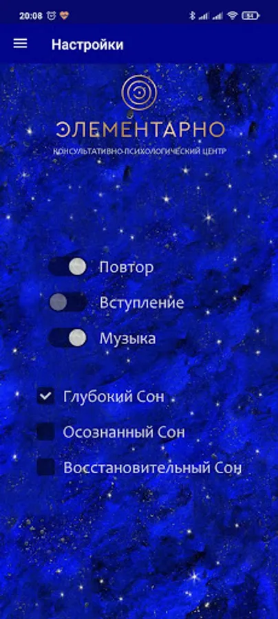 The application for the correction of insomnia (insomnia) was developed in the counseling and psychological center “Elementary” (Russia, Moscow). The head of development and author of texts is psychotherapist, candidate of medical sciences Daniyal Ibragimov.