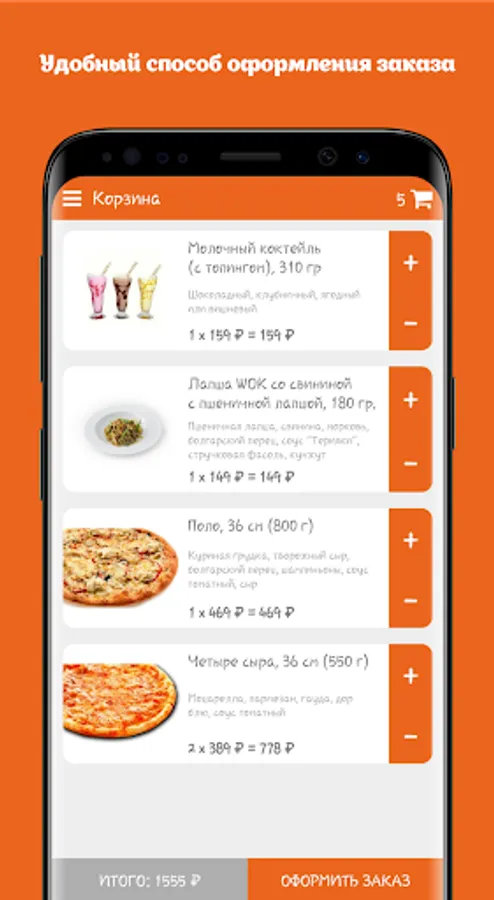 In our menu you will find almost everything: hot dishes, soups, salads, snacks, shawarma, grill, burgers, wok dishes, rolls and of course a large assortment of hearty pizzas!