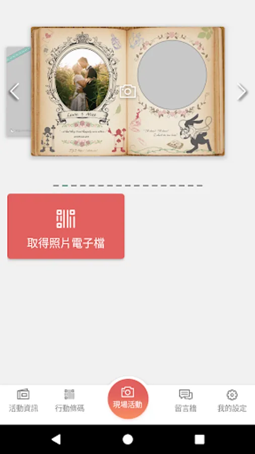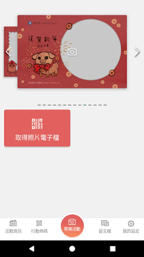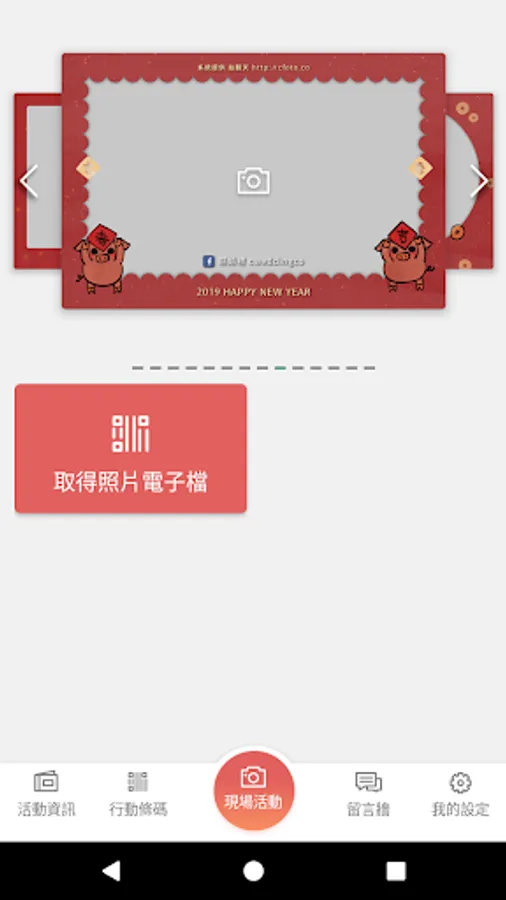 The organizer can build their own games, the people can join the activity by code (like: sample). User can use the app to send message or take a photo with the frame for the activity.