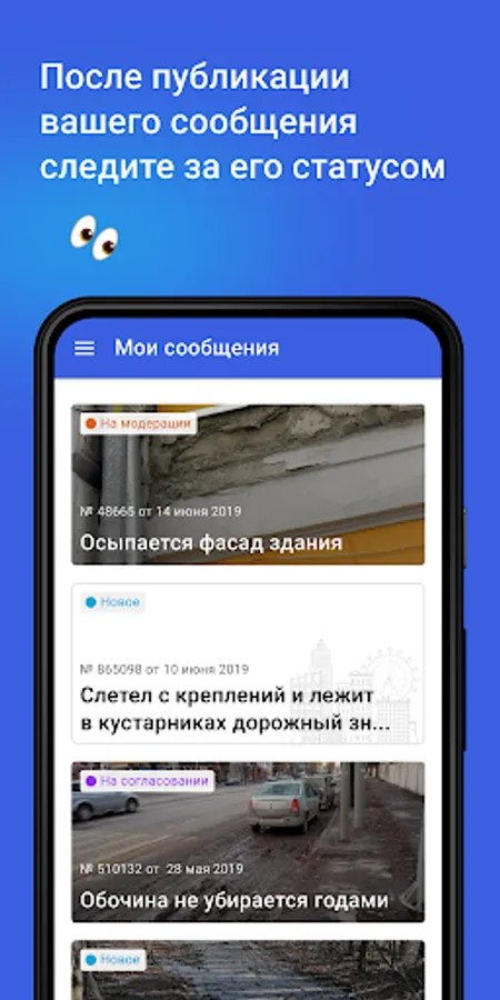 Choose a category and come up with a title. Make a description where you describe in detail the essence of the problem. Attach photos and videos to make the description clearer. After you send the message, it will be delivered to the department responsible for solving the specified problem.