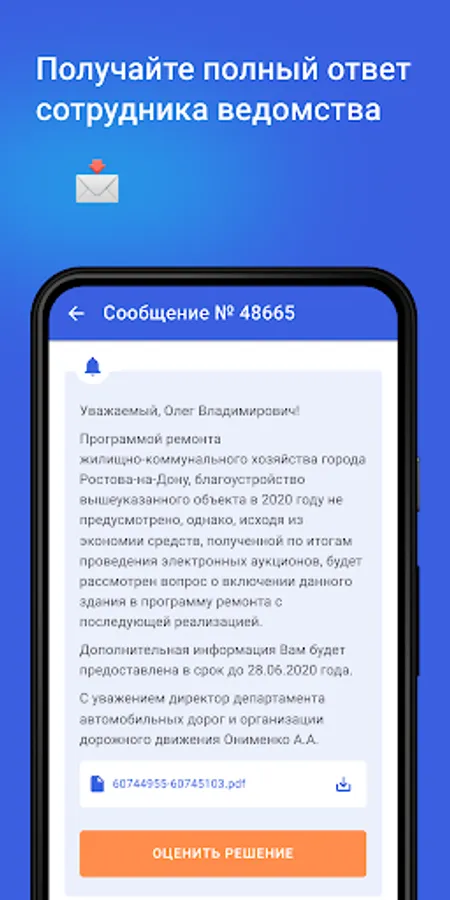 Evaluate the quality of the work performed upon the expiration of the deadline indicated by the employee of the department in the response. If you are not happy with the results of the work, file an appeal (re-report).
