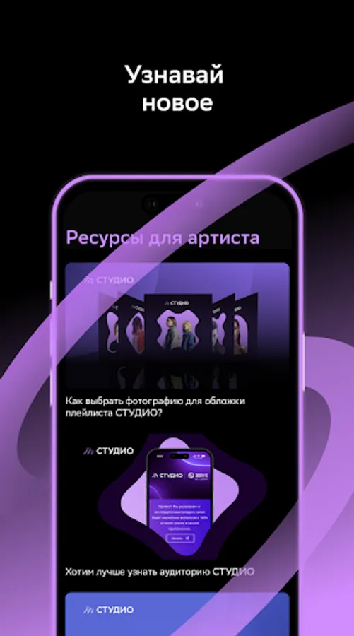 Zvuk STUDIO is an application that will unlock the creative potential of artists and creators with the help of convenient services. The online and offline space of the STUDIO platform make all participants of the creative process get together. Artists, lyricists, composers, clipmakers and other content creators are getting joined into a united professional community.