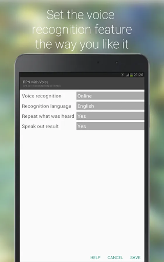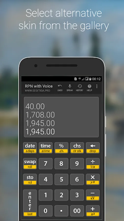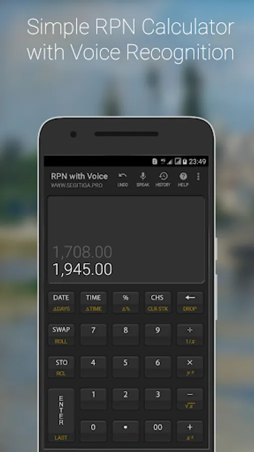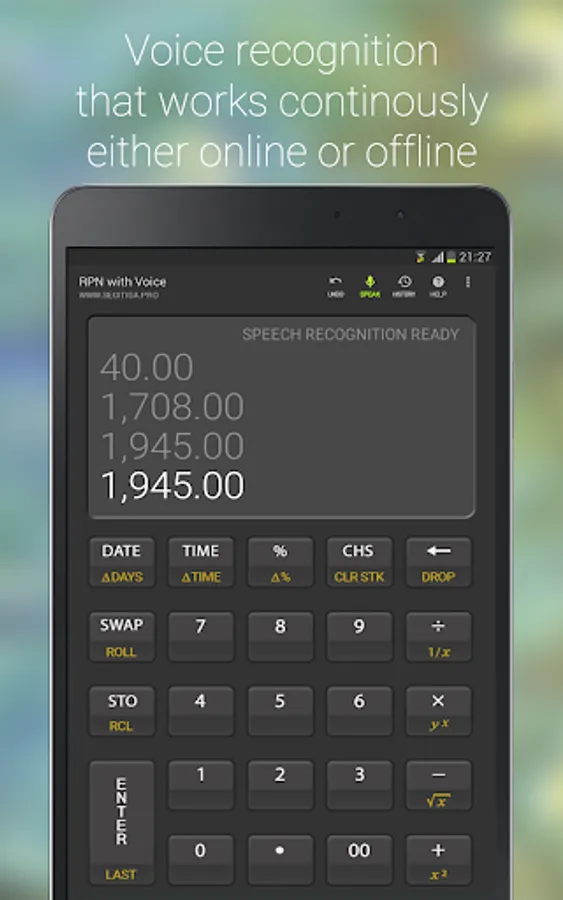 Instead of tapping the screen to input numbers and activate functions, you can now speak the keystrokes into the microphone, something like “nine square root”. And S3 RPN will respond by saying on the speaker: “nine square root”, “three”!