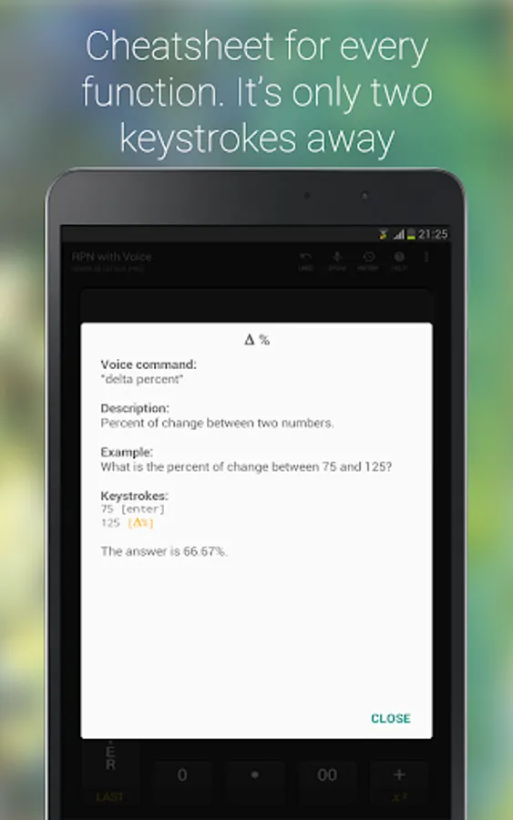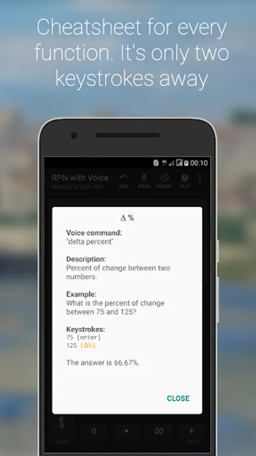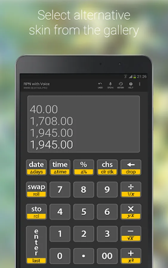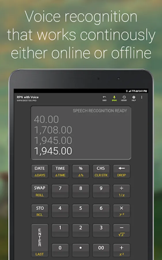 S3 RPN with Voice provides only basic functionalities of a calculator, but we have added a few nice features like below. (If you are not familiar with RPN, please read the note near the end of this product description).
