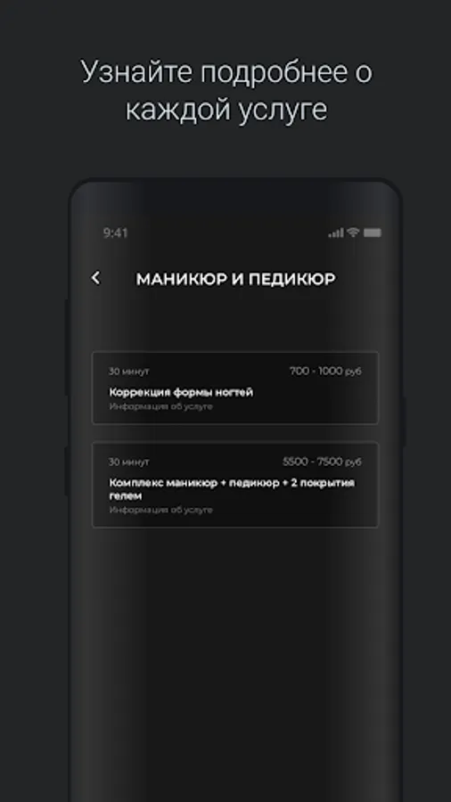 The conceptual nail service studio offers modern manicure, pedicure services in complexes of 4 and 6 hands.