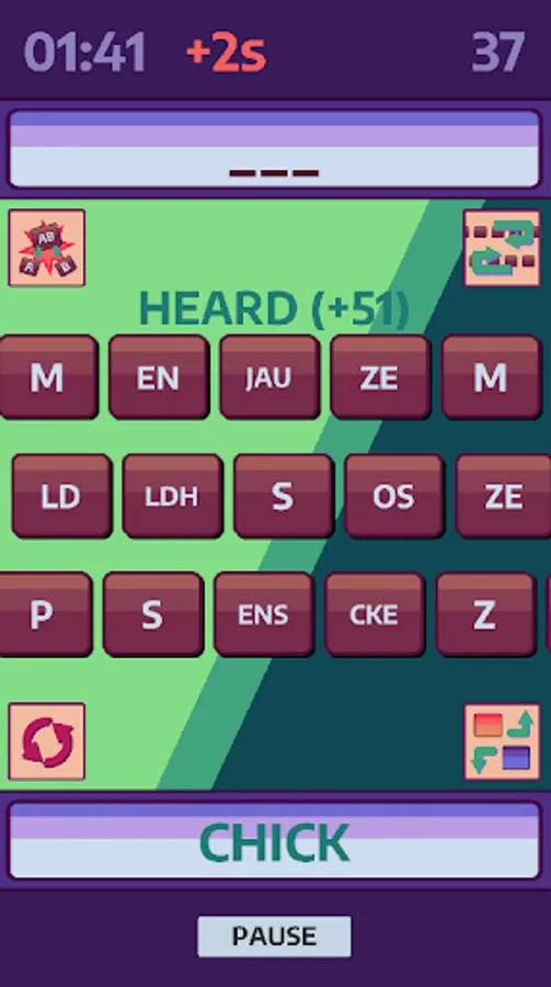 You have two minutes to build as many words as you can out of word fragments. Swipe the bricks upwards to build words from start to end. Tap on a word when it’s complete to score it, or continue building it into a longer word for a better score!