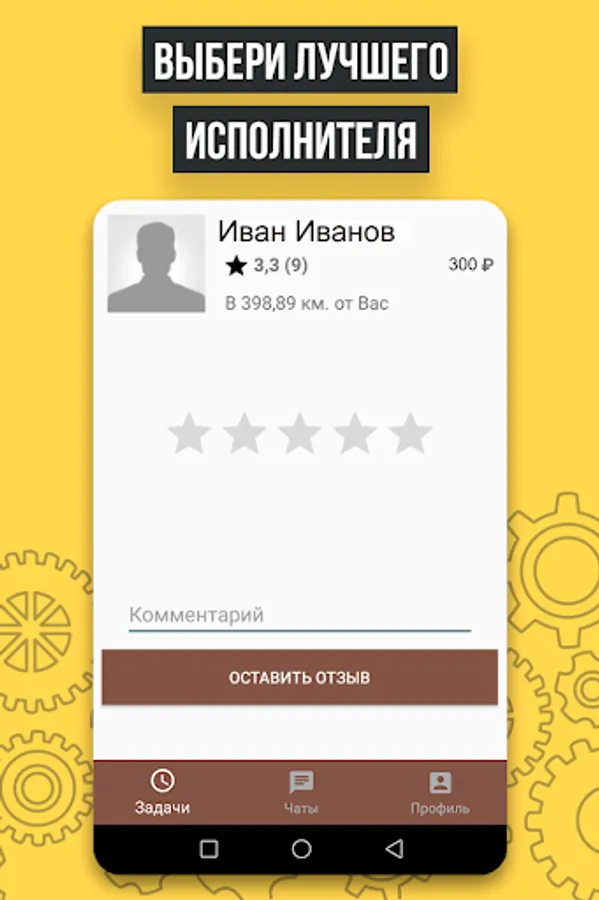 With us you can not worry about the fact that an incompetent specialist will come to your apartment, because all performers are tested in our application. Reviews in the store will help you to get to know each specialist better, to read feedback on working skills and skills from real customers, to whom workers have already come to the rescue.