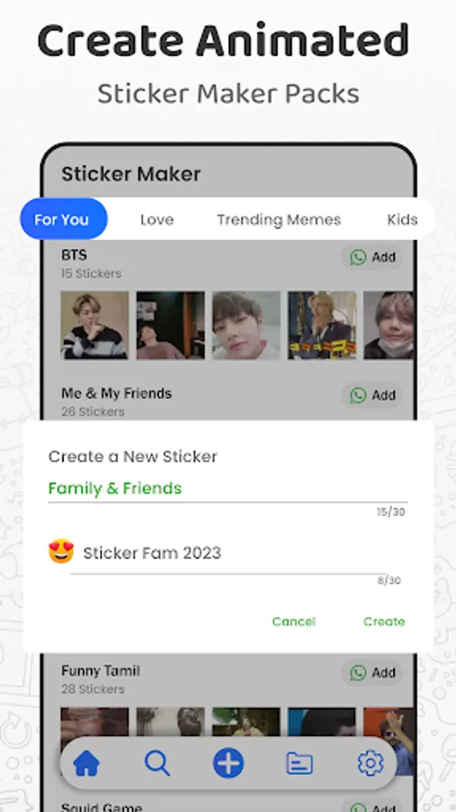 Design your own unique HD sticker pack for WhatsApp with the animated sticker Maker & GIF pack app in just a click, simply select a picture from the gallery of your cell phone and allow the stiker maker studio app to sensitively crop cut and create a wasticker of your own choice or, a manual option is also available for customized edges. Sticker graphic design app saves the pack into your WhatsApp keyboard section for later chatting with friends and family. Instantly provides animated stickers or text litstick, to create a funny spark in a monotonous chat for WhatsApp. The stocker striker creator app also introduces multiple emojis to be used in the stickers para whatsapp. Add text, emoji, or animation all at once.