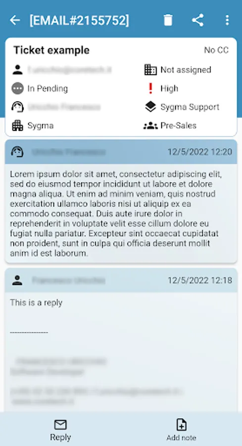 With the Sygma Ticket app your company can respond on the go, improving your customer support and response SLAs