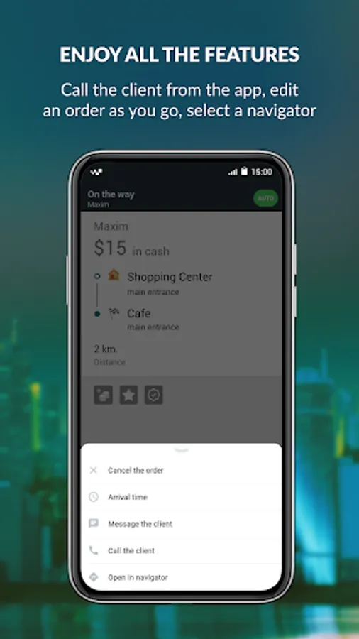 Different rate categories determine the final order price. You’ll know a fixed price in advance. A taxi meter is used to charge by time and distance. If a passenger changes the route during the trip or asks you to wait, it’s easy to edit the order yourself, calculate the new price, and accommodate the passenger's wishes.