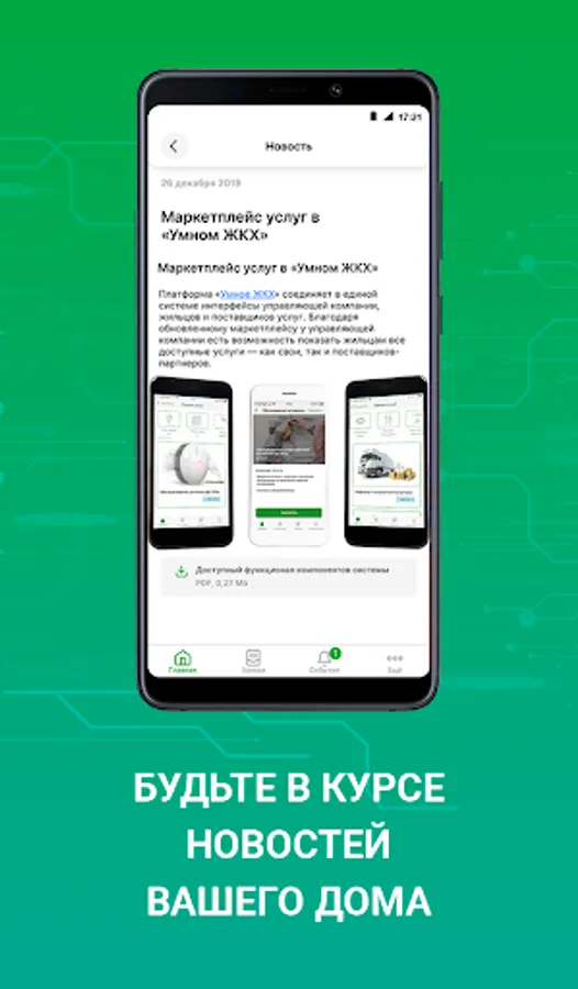 • Be aware of the news of the residential complex and receive notifications of important events from the management company