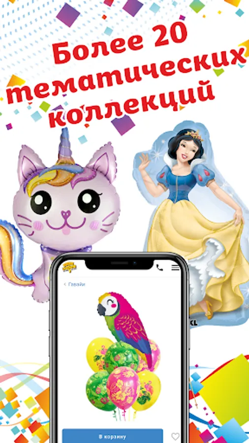 In our application, you can order bouquets of balloons, carnival products, candles, soap bubbles and much more for the celebration.