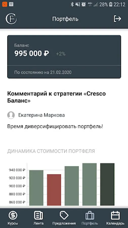 The mobile application for customers of Cresco Finance allows you to track the dynamics of the investment portfolio and receive information about additional opportunities. Financial and investment market news, relevant analytics and professional advice will be useful to all private investors and those interested in effective money management and investing their own funds.