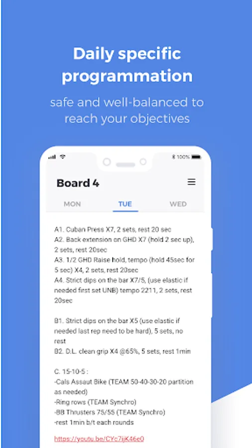 Pour les athlètes de Crossfit. La programmation assure des entraînements de Crossfit bien balancés selon le niveau de chacun, débutant, intermédiaire et avancé.