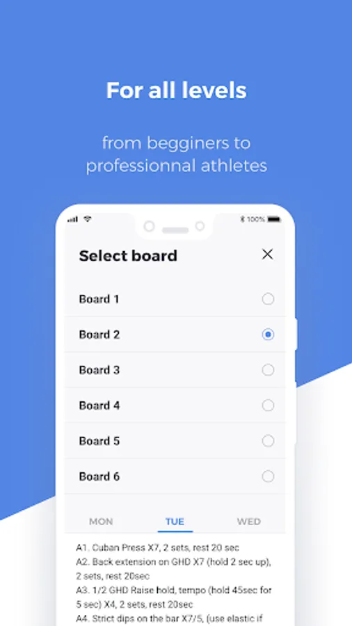 L'application PRO1 Programming s’adresse à tous. Les exercices sont soigneusement sélectionnés pour convenir à tous les niveaux d’individus désirant améliorer leurs capacités fonctionnelles.
