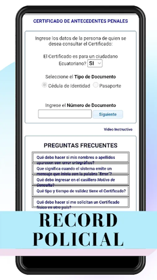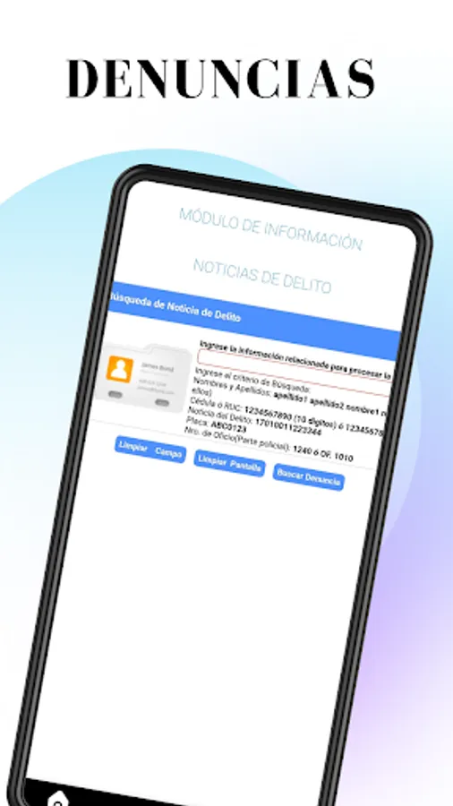 This application allows you to quickly and easily consult the Judicial Processes and Complaints or crimes that a person has in Ecuador.