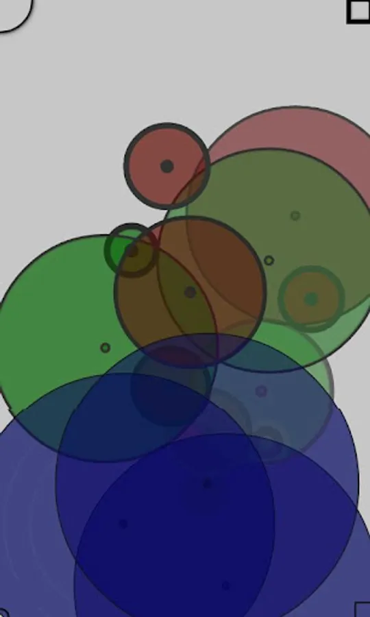 Circularity does away with cumbersome user interfaces, keeping it to a bare minimum in order to maximize the work area. Notes are generated by circular beacons as they intersect each other's origins, based on the current radius of the triggered beacon.