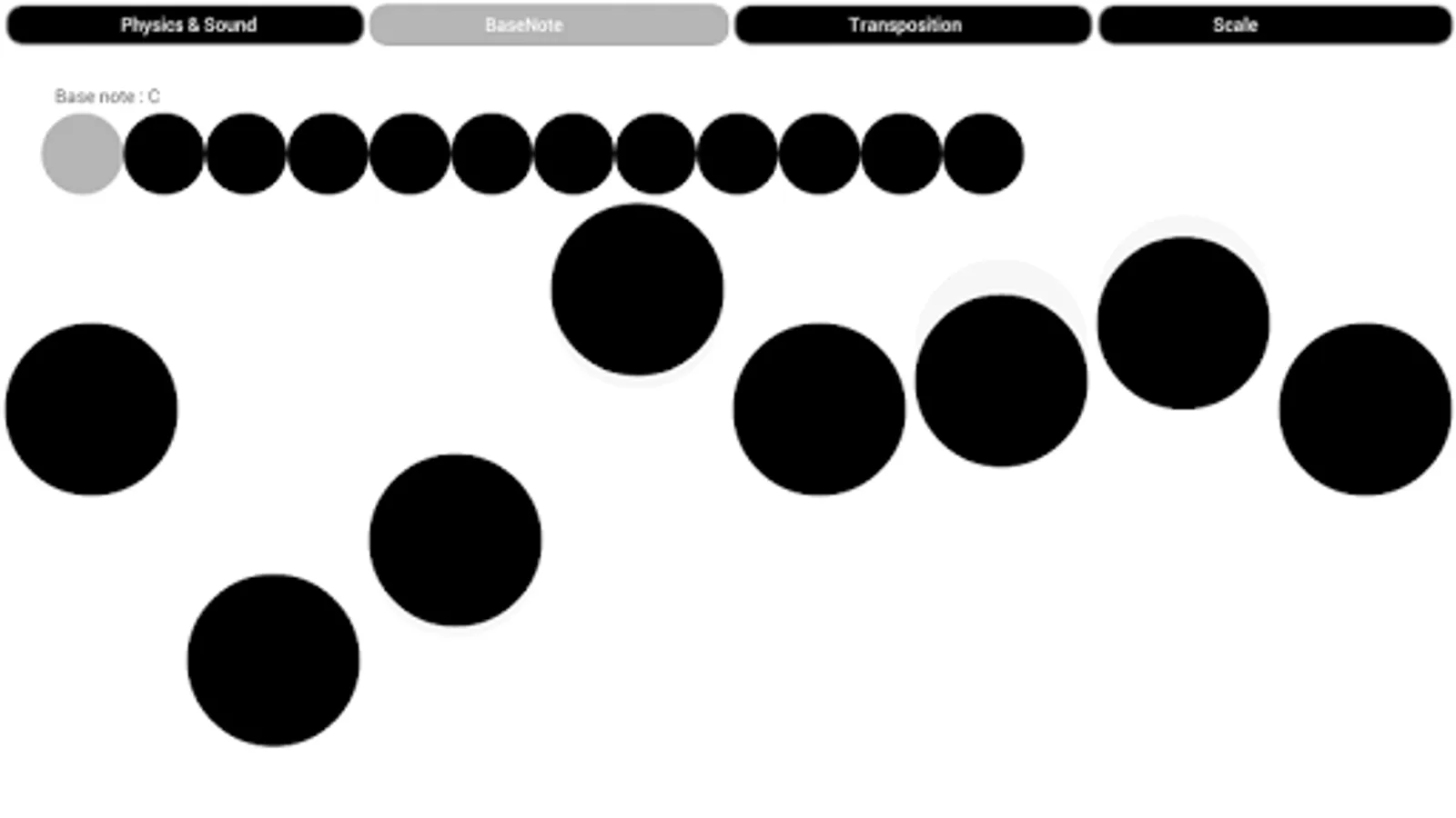 - one menu with buttons to adjust base note and scale to be able to tune your instrument.