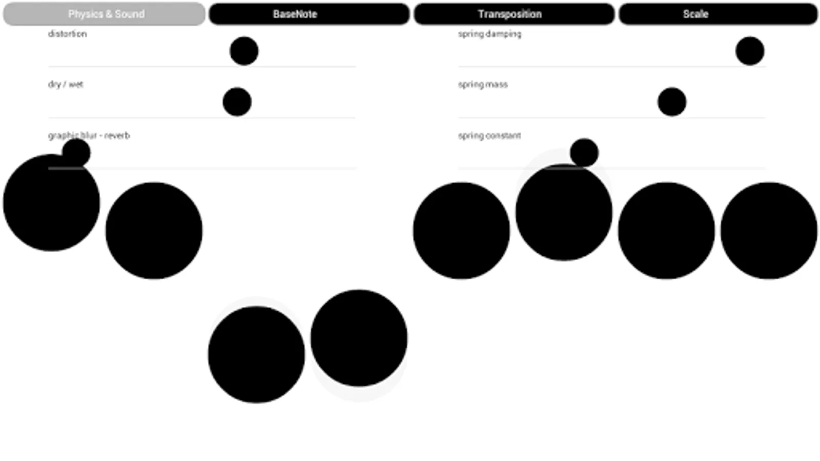You can adjust some parameters of the spring simulation to alterate the way springs move and thus the sound produced by the app.