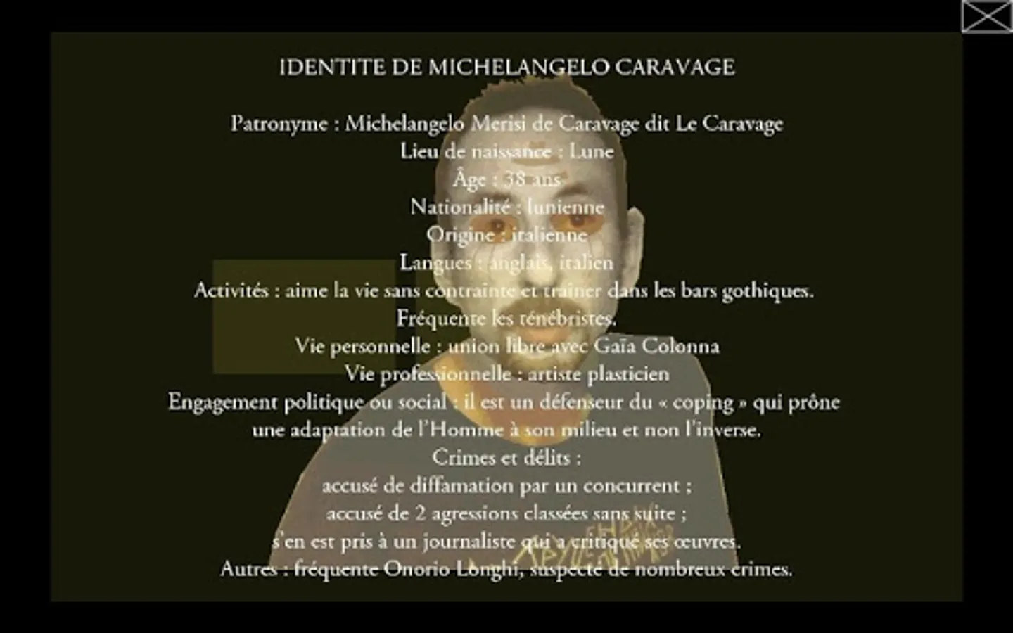 The revolution of darkness is a science fiction book, interactive multimedia, loosely based on the life of painter Caravaggio.