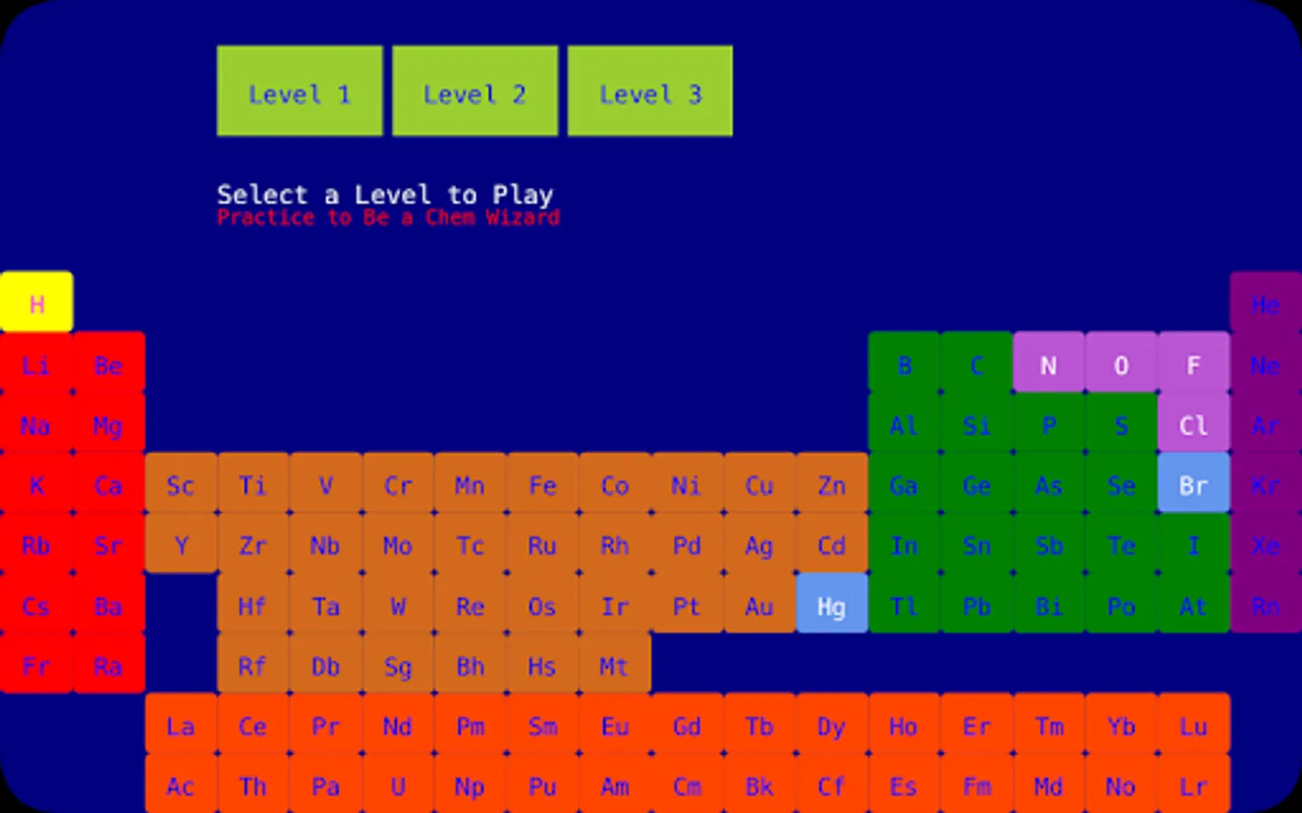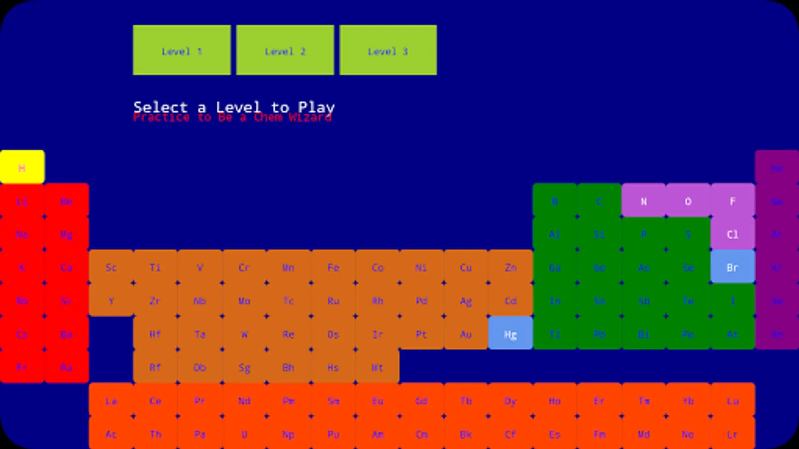 ChemWiz is an educational game designed to help everyone have fun by learning the most fundamental chemistry concepts: the periodic table of elements, which are the building blocks of our amazing universe.