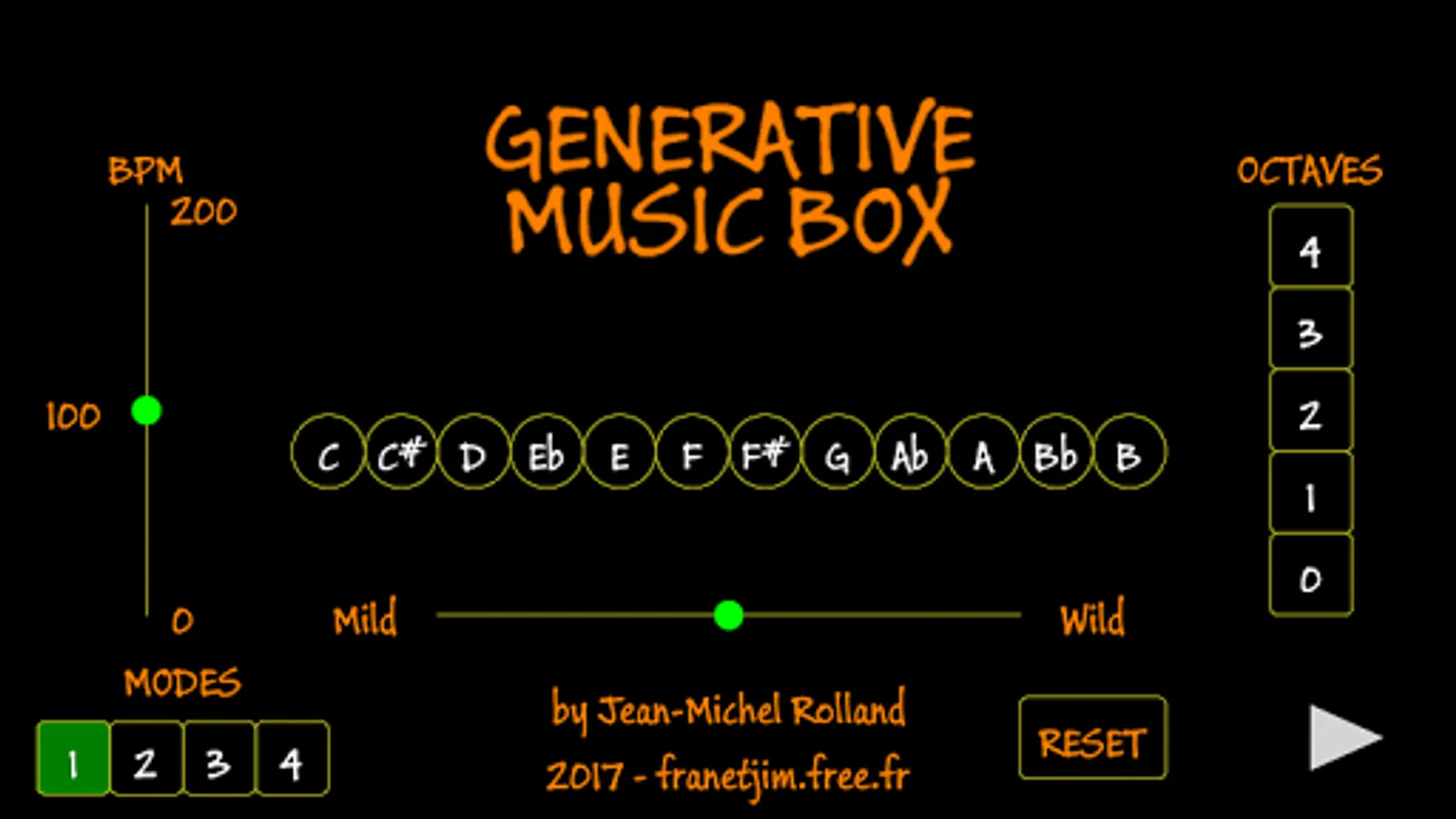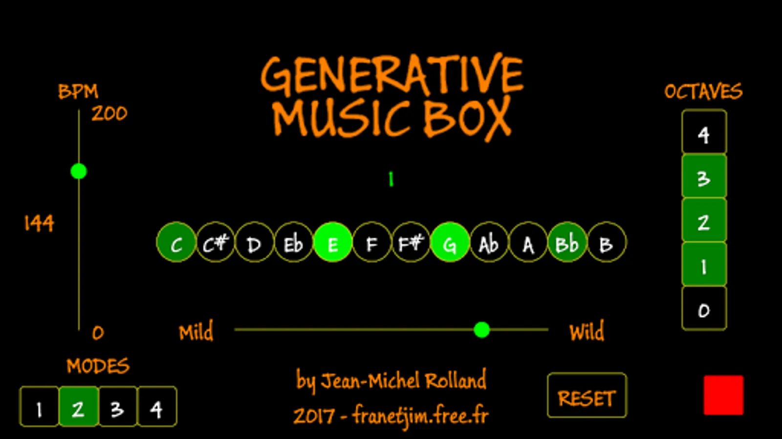 The four modes and the "wild" setting are algorithms created to generate different musical patterns. But randomness makes patterns never repeat twice the same.
