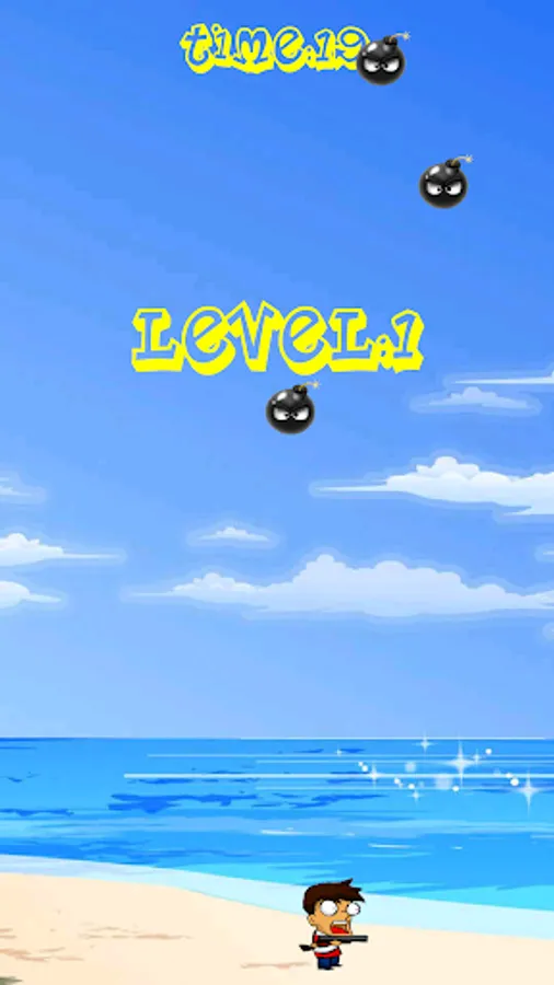 Bombs drop onto the beach. You have to tilt your device left and right to avoid the BOOM of the bomb drop storm crashing on down on the island battle camp. Join the battle camp run and survive the bombs as long as you can!