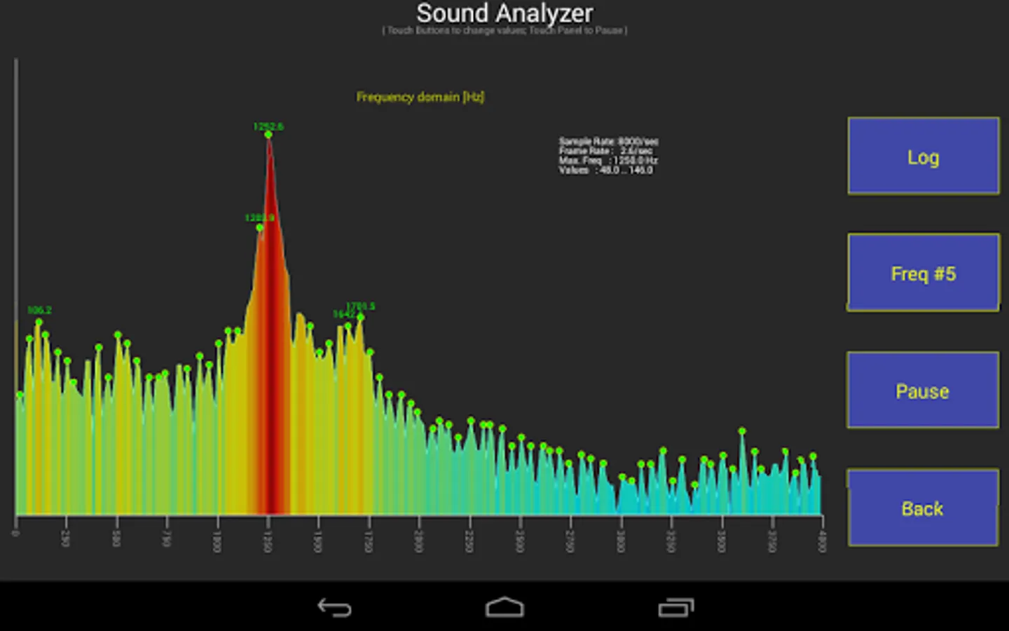 Analyze sound you hear with your smartphone or tablet. See sound content in time and frequency in identify leading frequencies. With this tool you can analyze any sound you wish (playing instrument, singing, whistle, car engine, animal sounds, etc...)