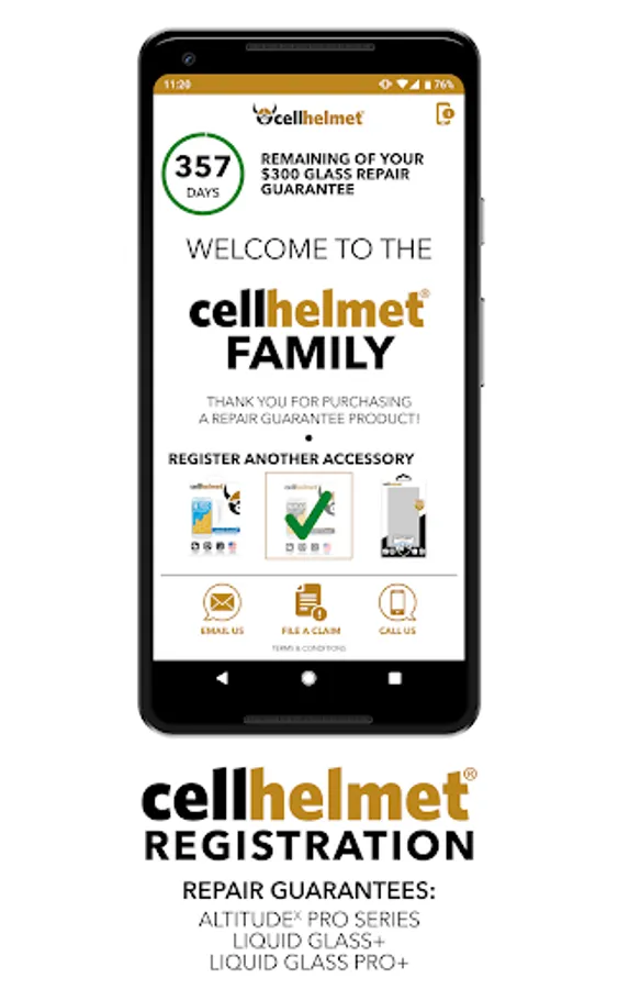 cellhelmet Registration App is for anyone who purchased Liquid Glass+, Liquid Glass Pro+ and Altitude X Pro Series.