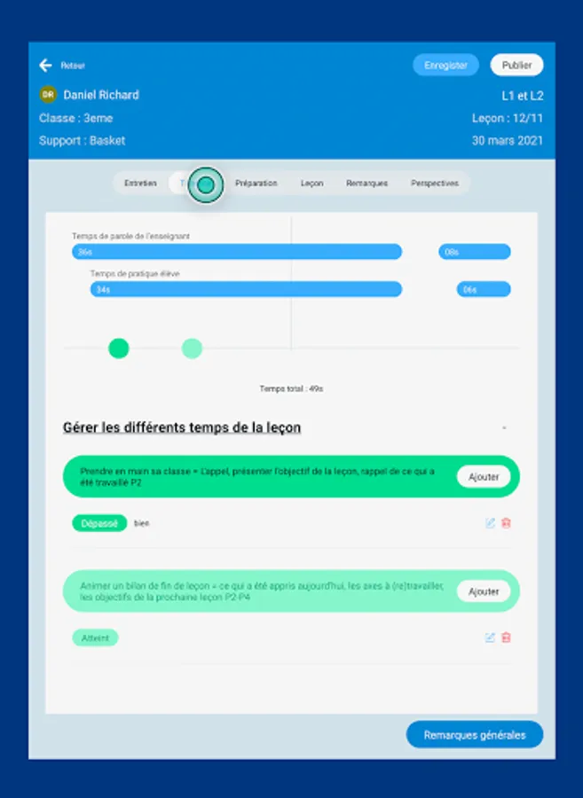 • It engages each trainee in a process of targeted professional transformation while allowing him to become aware of his progress.