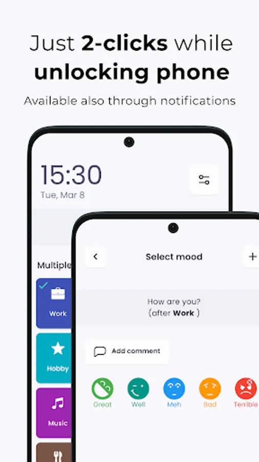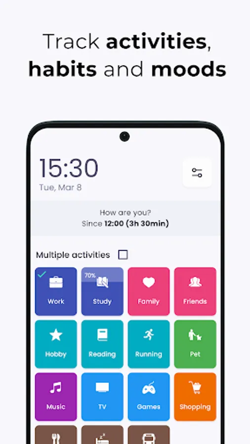★ Add records without stress - Track your activities immediately after unlocking your phone and without typing a single letter!★ Track your time - Find out exactly how much time you have spent on your daily activities and boost your productivity. Time tracking has never been easier!