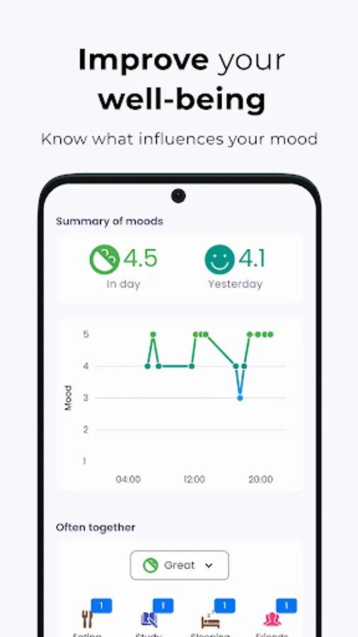 ★ Repeat what makes you feel good - Find out how your mood changes with your activities and invest in what makes you happiest.
